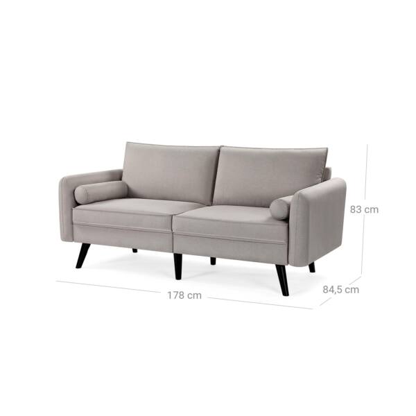 Juodos medžio masyvo kojelės ir smėlio spalvos lino imitacija – neprilygstamas derinys, kuris ne tik puošia jūsų kambarius, bet ir yra ypač tvirtas bei patvarus. Ši svetainės sofa 180 x 82 x 83 cm, smėlio spalvos, suteiks jūsų interjerui elegancijos ir komforto.