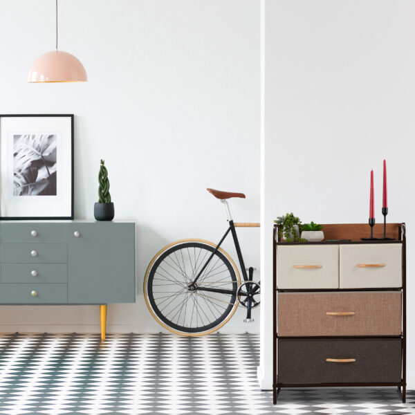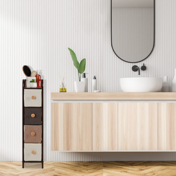 - Medžiaginiai Stalčiai: Sulankstomi medžiaginiai stalčiai yra įvairių spalvų, suapvalinti natūralaus medžio rankena, suteikiantys elegancijos ir patogumo.