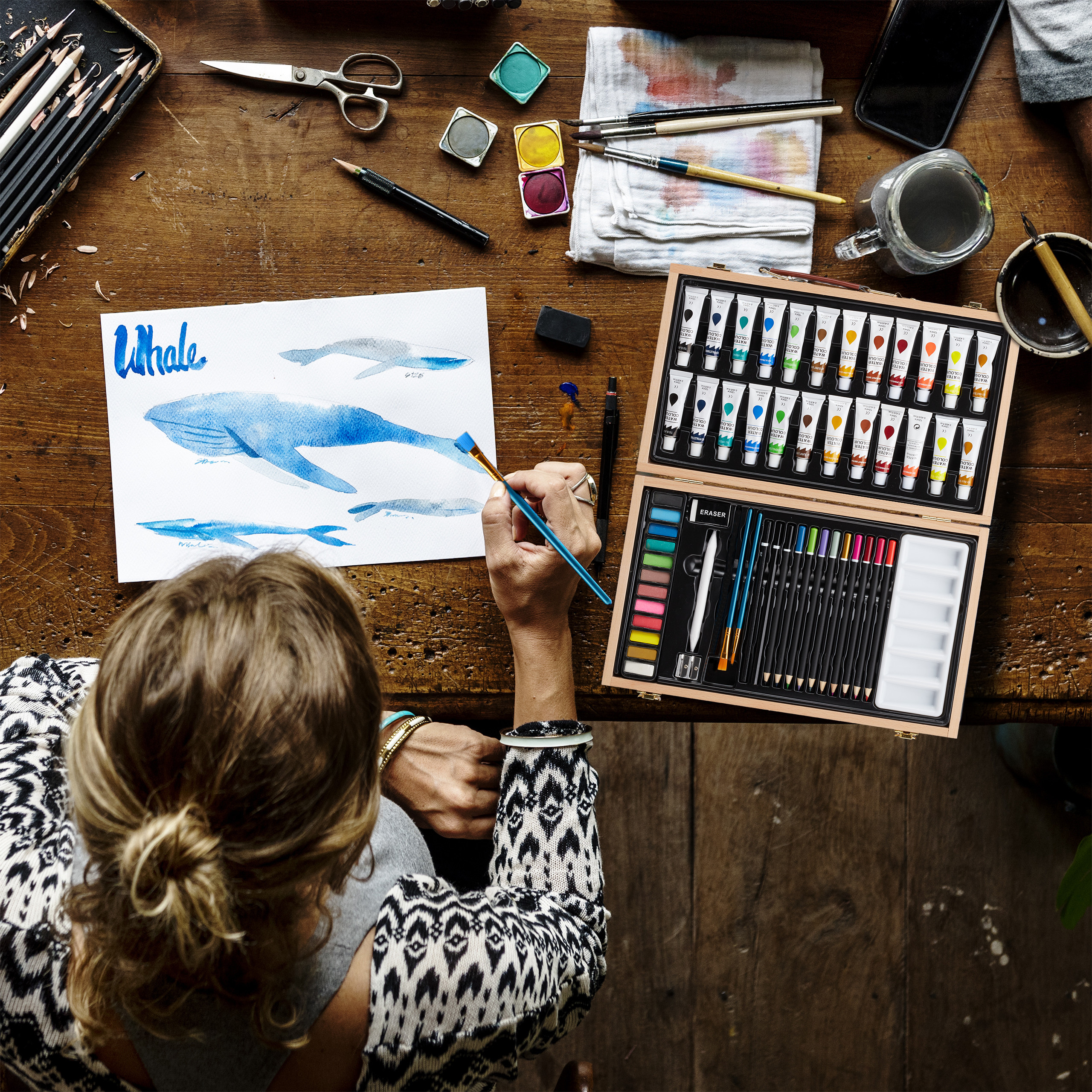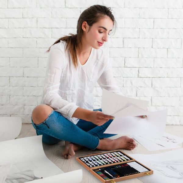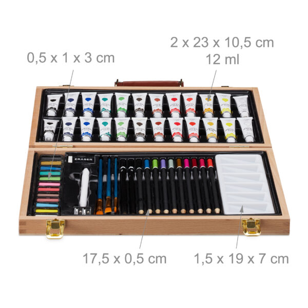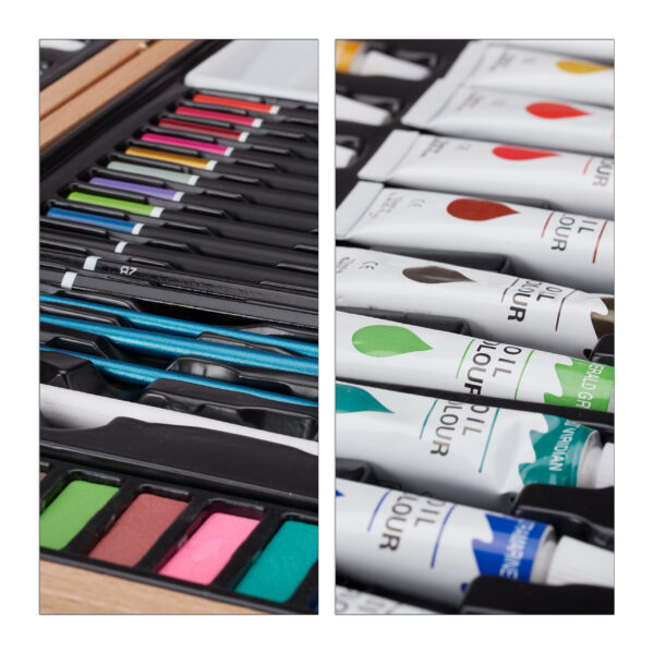 Įkvėpkite savo kūrybiškumą su šiuo elegantišku ir funkcionaliu tapybos-piešimo rinkiniu, kuris puikiai tinka tiek pradedantiesiems, tiek patyrusiems menininkams. Šis rinkinys, pateikiamas stilingame lagamine, yra ne tik praktiškas, bet ir estetiškai patrauklus, todėl puikiai tiks kaip dovana ar asmeninis kūrybos įrankis.
