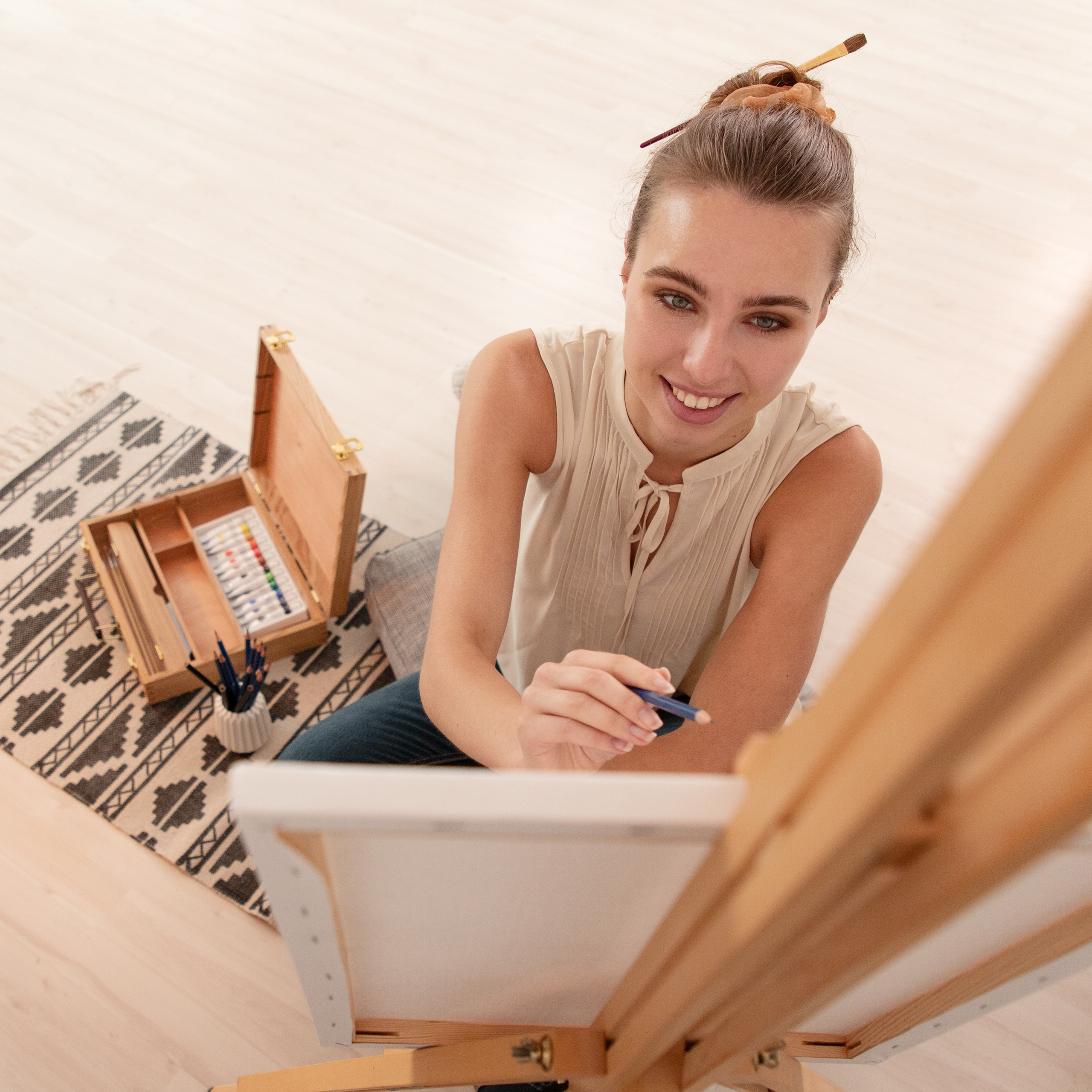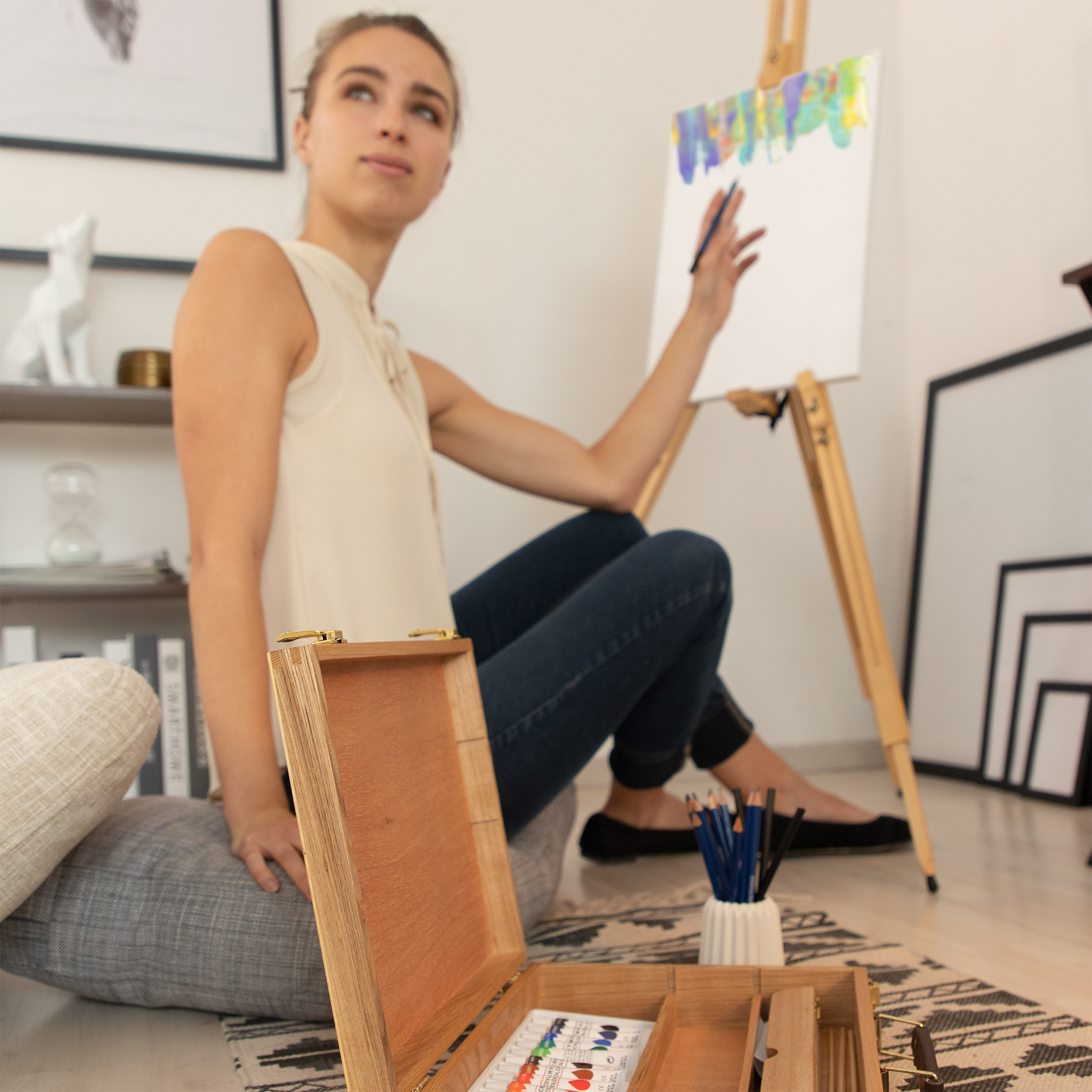 - Tvirtas molbertas, užtikrinantis drobės stabilumą tapybos metu.