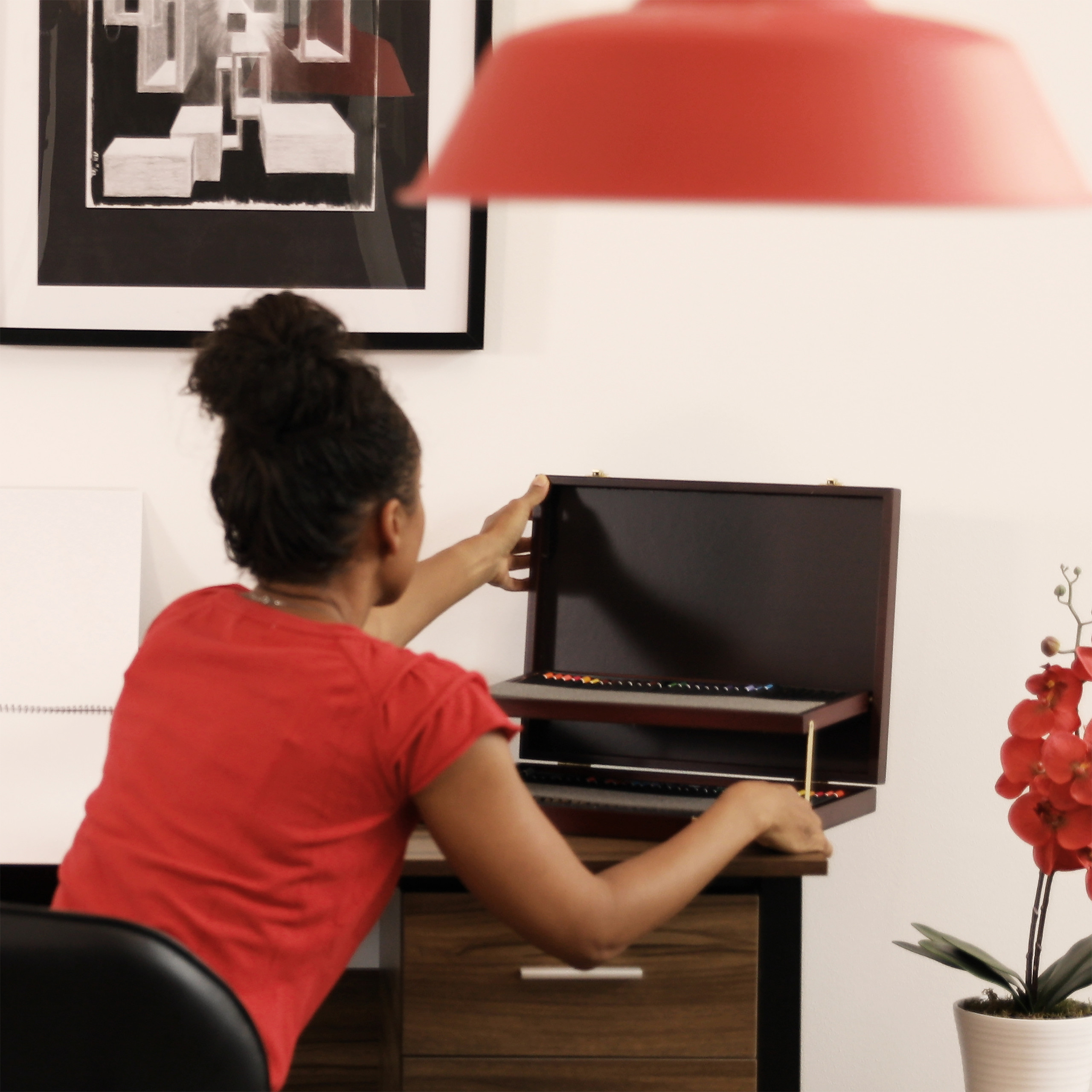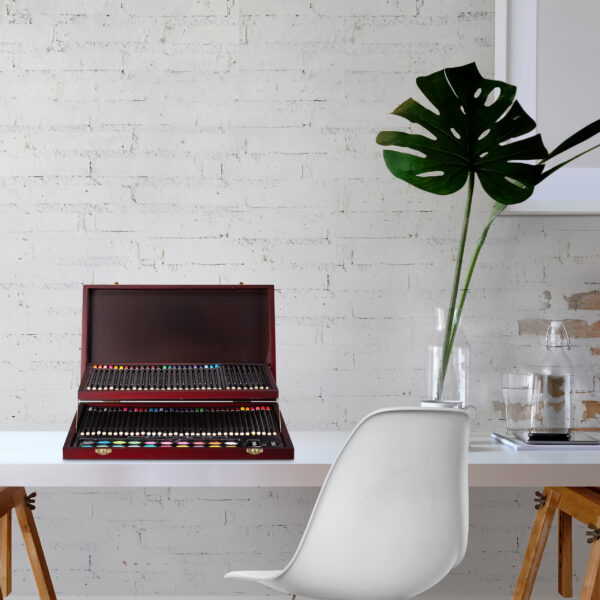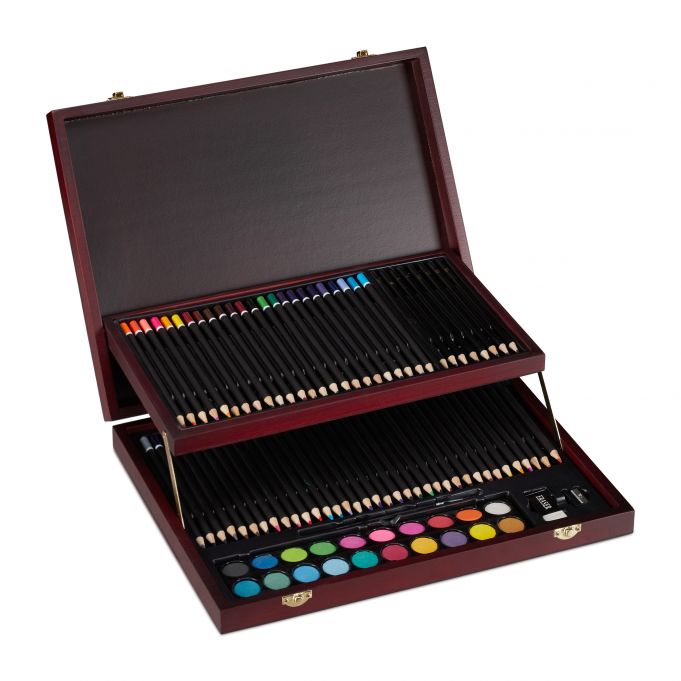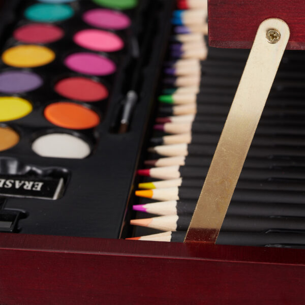 Įkvėpkite savo kūrybiškumą su šiuo elegantišku ir funkcionaliu tapybos-piešimo rinkiniu, kuris yra puikus pasirinkimas tiek pradedantiesiems, tiek profesionalams. Šis rinkinys, supakuotas į stilingą tamsiai rudos ir auksinės spalvos lagaminą, suteiks jums viską, ko reikia, kad galėtumėte išreikšti savo meninius gebėjimus.
