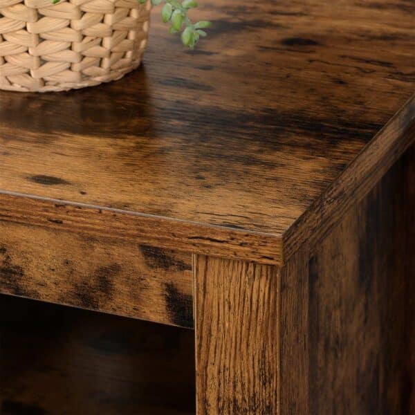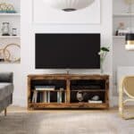 Televizoriaus lentyna su atvirais skyriais vintažinės rudos spalvos
