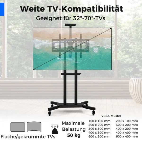 - Suderinamas su plokščiais ir lenktais televizoriais nuo 32 iki 70 colių, maksimalus svoris – 50 kg.