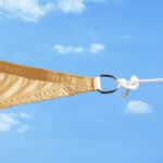 Ši saulės burė yra lengvai surenkama ir nereikalauja jokių įrankių! Tiesiog išskleiskite burę toje vietoje, kur jums reikia apsaugos nuo saulės. Tada raskite 4 tvirtinimo taškus, prie kurių norėsite pritvirtinti pridedamas virves. Virvės yra 2 metrų ilgio, todėl šiuo spinduliu ieškokite medžių, stulpų ar kitų stabilių objektų. Tada lynai pritvirtinami prie tvirtinimo taškų ir tvirtų tento kilpų bei nerūdijančio plieno žiedų, kad brezentą būtų galima ištempti tvirtai ir bent 25 laipsnių kampu. Tai užtikrina, kad lietaus vanduo nubėgs sklandžiai.