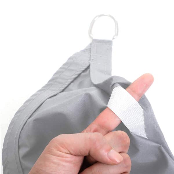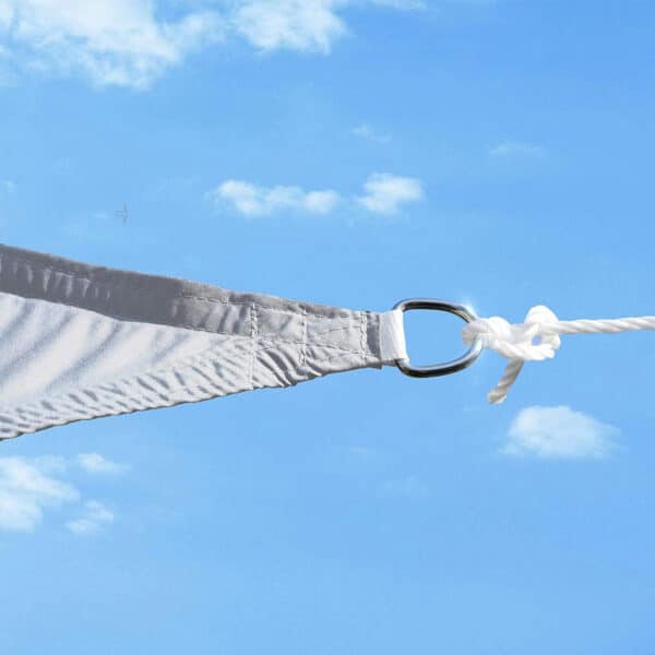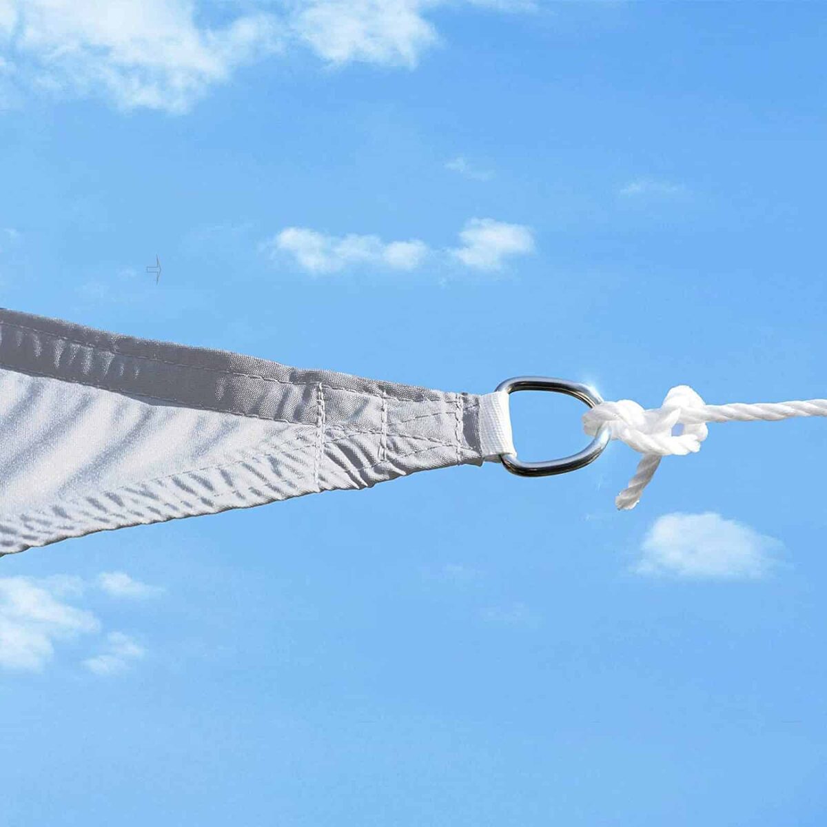 Ši saulės burė yra lengvai montuojama ir nereikalauja jokių įrankių. Tiesiog išskleiskite burę toje vietoje, kur jums reikia apsaugos nuo saulės. Tada raskite 4 tvirtinimo taškus, prie kurių norite pritvirtinti pridedamas virves. Virvės yra 2 metrų ilgio, todėl šiuo spinduliu raskite medžius, stulpus ar kitus stabilius objektus. Tvirtinimo lynai pritvirtinami prie tvirtinimo taškų ir tvirtų tento kilpų bei nerūdijančio plieno žiedų, kad brezentą būtų galima ištempti tvirtai ir bent 25 laipsnių kampu. Tai užtikrina, kad lietaus vanduo nubėgs sklandžiai.