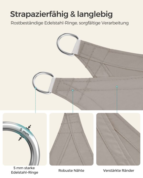 Ieškote elegantiško ir funkcionalaus sprendimo apsaugai nuo saulės? Mūsų smėlio spalvos tentas nuo saulės yra puikus pasirinkimas, suteikiantis tiek estetinį grožį, tiek praktinę naudą. Šis tentas ne tik apsaugos jus nuo saulės spindulių, bet ir suteiks jūsų lauko erdvei stilingą akcentą.