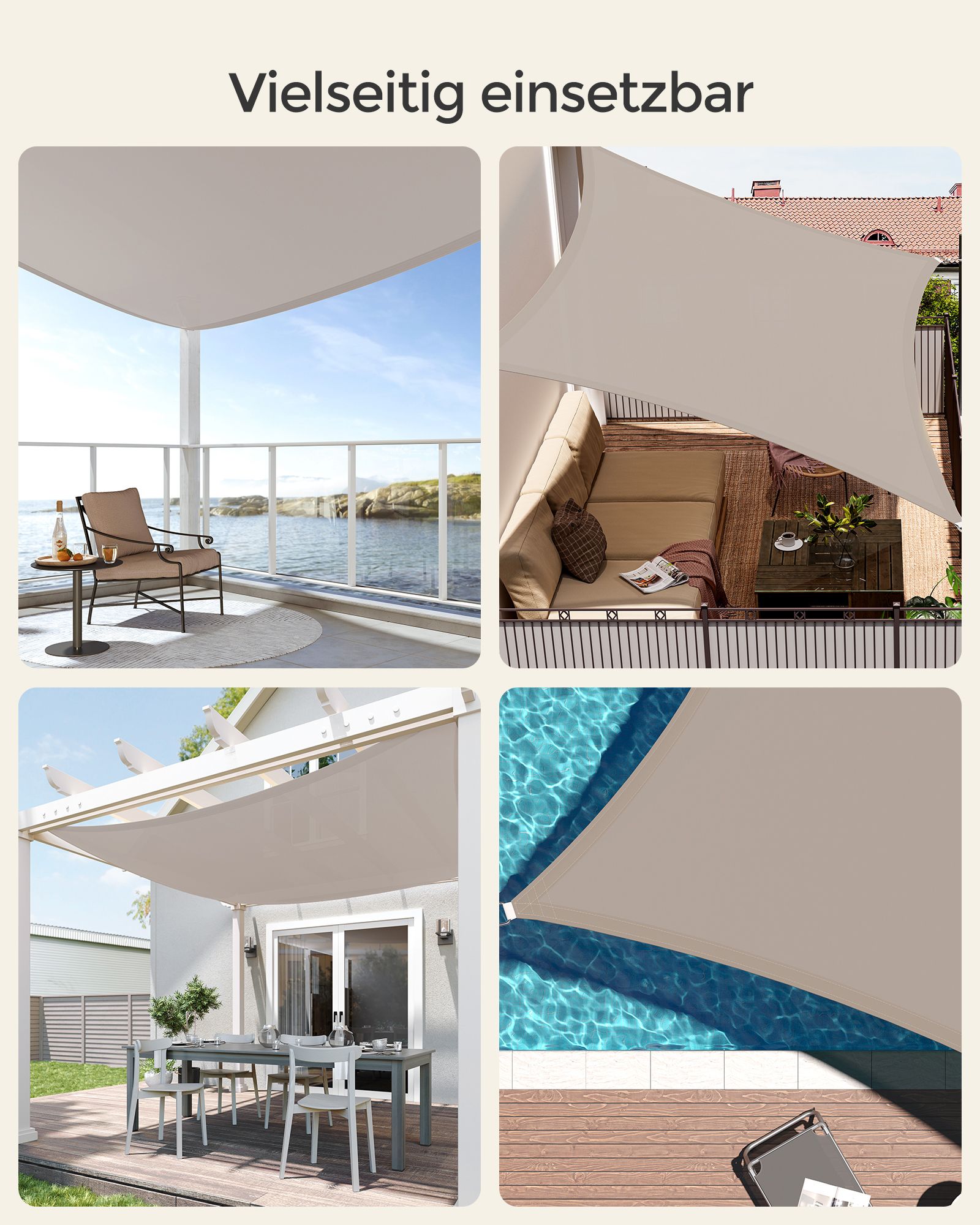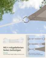 Šis tentas yra idealus pasirinkimas terasoms, sodams, balkonams ar bet kuriai kitai lauko erdvei, kurioje norite sukurti jaukią ir apsaugotą nuo saulės aplinką. Investuokite į kokybę ir stilių su mūsų smėlio spalvos tentu nuo saulės!
