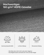 Ieškote stilingo ir funkcionalaus sprendimo apsaugai nuo saulės? Mūsų tamsiai pilkos spalvos tentas yra puikus pasirinkimas, suteikiantis ne tik apsaugą, bet ir elegancijos jūsų lauko erdvei. Pagamintas iš aukštos kokybės medžiagų, šis tentas užtikrina ilgaamžiškumą ir patikimumą.