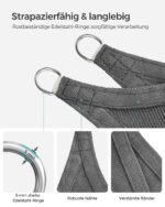 Šis tentas yra puikus pasirinkimas tiek namų kiemui, tiek komercinėms erdvėms. Jo dūmų pilka spalva puikiai dera su įvairiais dizaino sprendimais, o aukštos kokybės HDPE audinys užtikrina atsparumą UV spinduliams ir oro sąlygoms. Nerūdijančio plieno žiedai suteikia papildomą tvirtumą ir ilgaamžiškumą.
