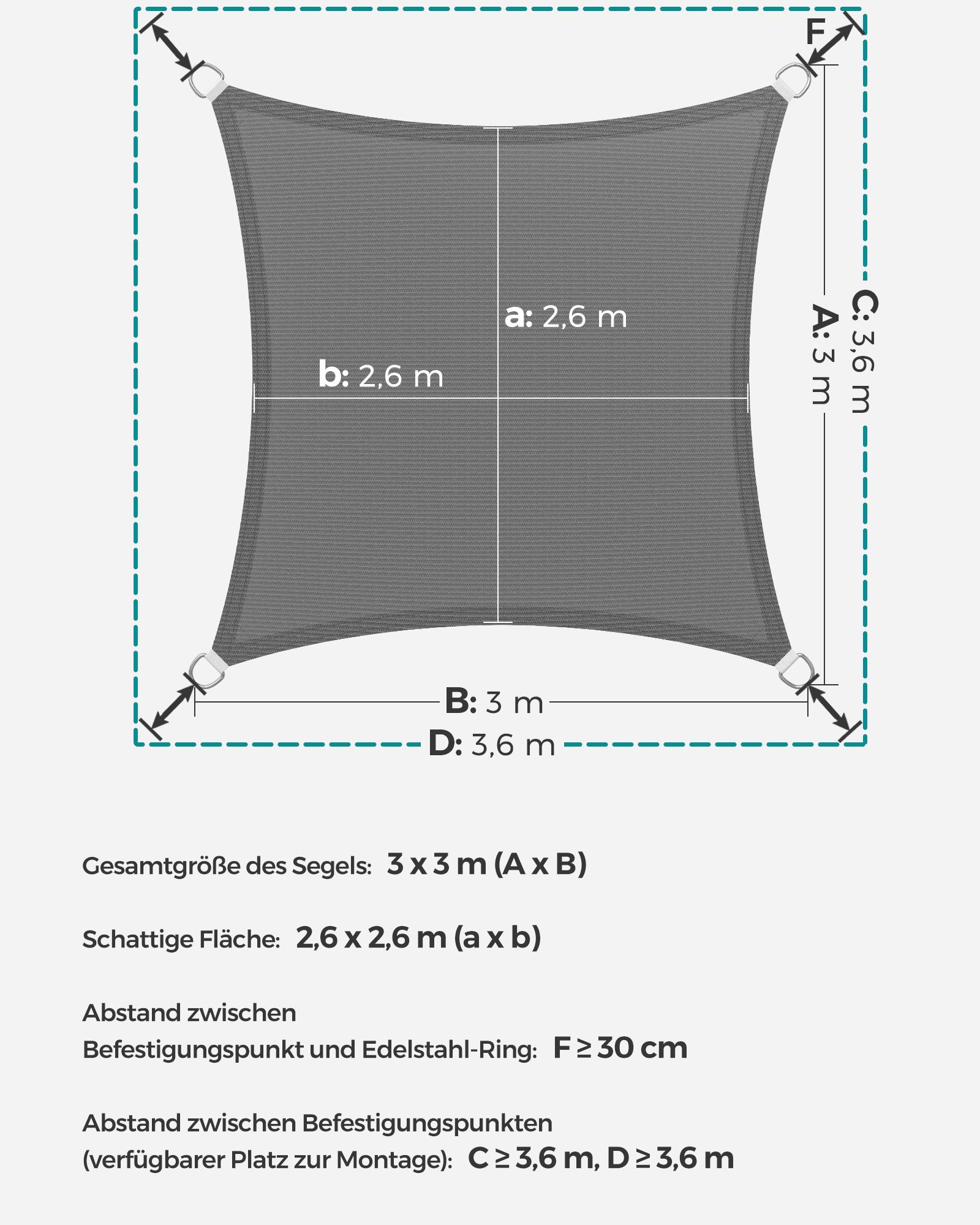 Tentas nuo saulės 300x300cm., tamsiai pilkos spalvos