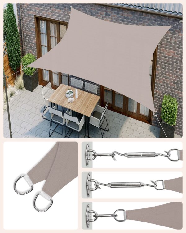 Šis tentas yra lengvas ir lengvai montuojamas, todėl puikiai tinka tiek nuolatiniam, tiek laikinam naudojimui. Jo smėlio spalva suteikia natūralų ir harmoningą vaizdą, kuris puikiai dera su įvairiais lauko dizainais. Pasirinkite mūsų tentą ir mėgaukitės komfortu bei stiliumi savo kieme ar terasoje!