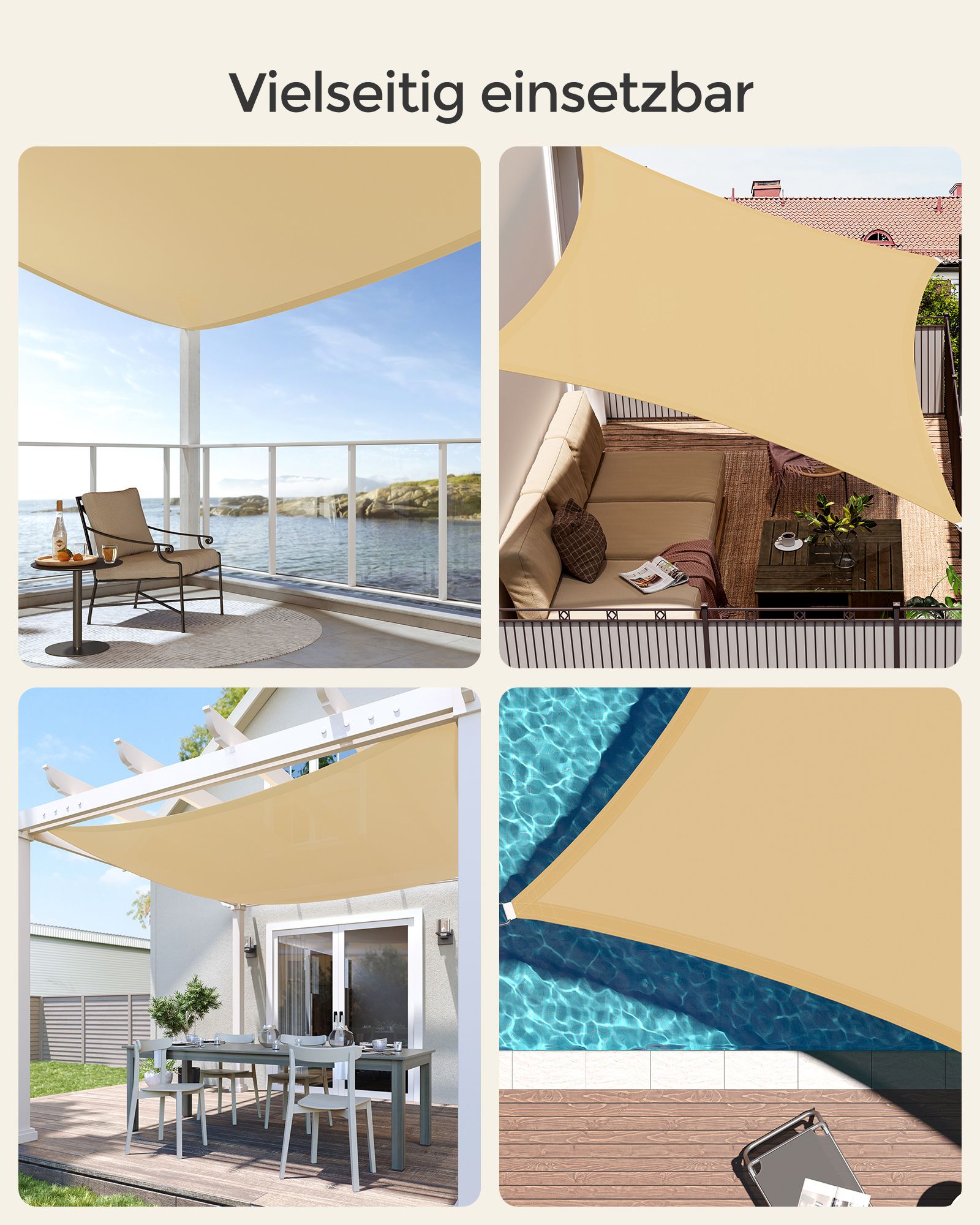 Pasirinkite mūsų smėlio spalvos tentą ir mėgaukitės komfortu bei stiliumi savo lauko erdvėje!