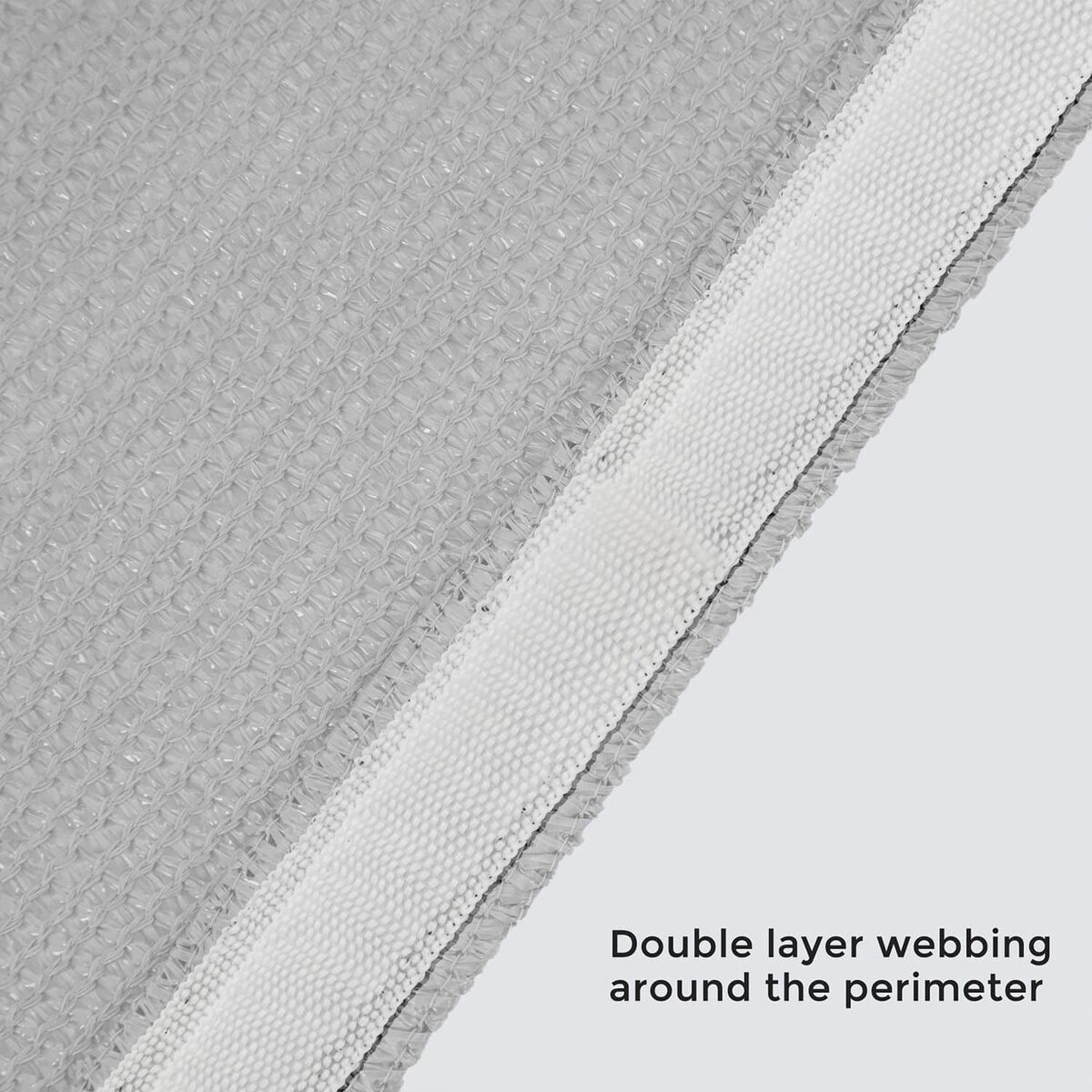Gerai apgalvota iki smulkmenų: Kvėpuojantis HDPE audinys, kruopščiai išbaigtos siūlės, įgaubtas siluetas, dvigubo sluoksnio sutvirtinimo dirželiai, tvirti nerūdijančio plieno žiedai ant kampo – ši saulės burė puikiai tiks vasarą. Be to, jis nėra atsparus vandeniui, todėl jums nereikės jaudintis, kad brezentas nuslinks nuo susikaupusio lietaus vandens.