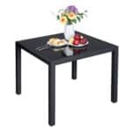 Jėga ir stilius: nesenstanti juoda, modernus dizainas – šis stalas yra stilingas jūsų sodo, terasos ar balkono priedas. Stalviršis pagamintas iš grūdinto stiklo, rėmas – iš aliuminio. Šių medžiagų derinys užtikrina gerą keliamąją galią (iki 75 kg) ir tuo pačiu mažą svorį, todėl šį stalą lengvai transportuosite iš sodo į namus.