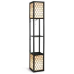 Toršeras 26x26x156cm, juodos spalvos, skirtas efektyviam apšvietimui ir papildomai daiktų saugojimo vietai. Dvigubas E27 lizdas leidžia reguliuoti šviesos intensyvumą, o integruotos lentynos suteikia funkcionalumo tiek svetainėje, tiek miegamajame.