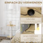 Priverskite savo namus spindėti naudodami šią HOMCOM toršerą. Šiuolaikinis dizainas puikiai dera su įvairiais interjero stiliais ir yra graži bet kokių namų puošmena. Juodas rėmas ir neįprastas dizainas kiekvienam kambariui suteikia elegancijos. Integruota lentyna suteikia vietos nuotolinio valdymo pultams, mobiliesiems telefonams ir dar daugiau. Tiesiog įkiškite kištuką į lizdą ir turėsite elegantišką apšvietimą, suteikiantį dekoratyvinių akcentų.