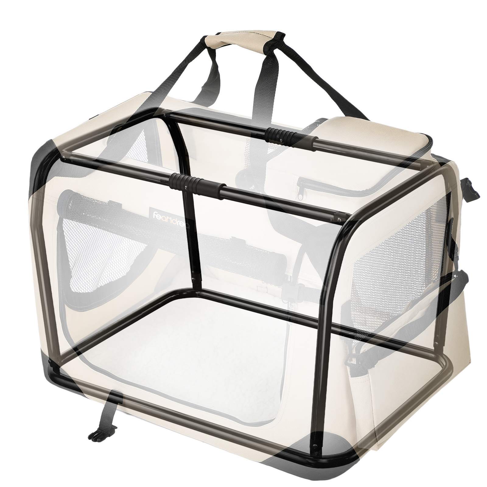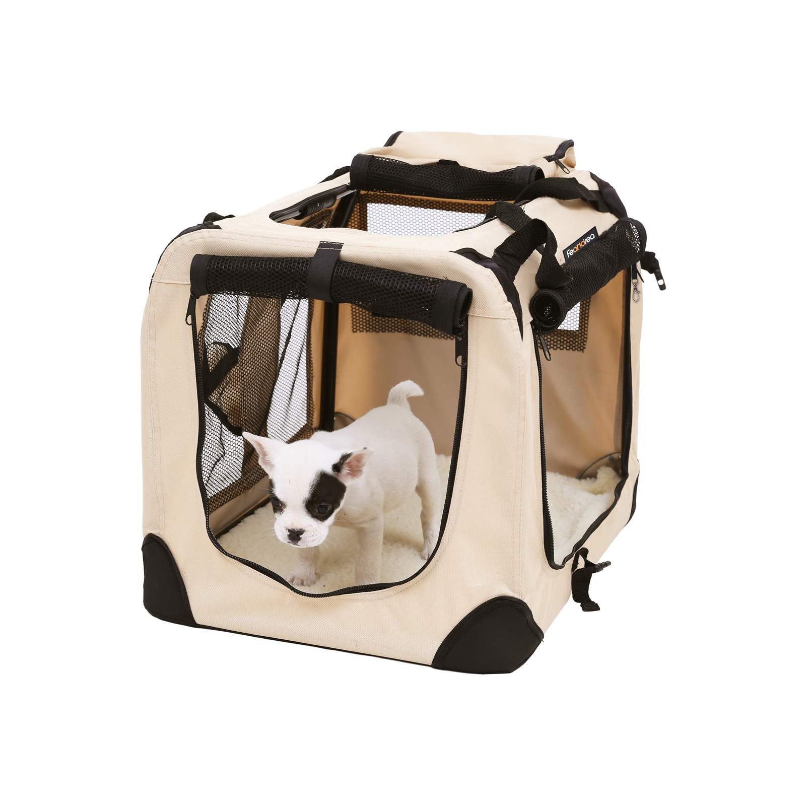 Jei šunį uždarysite į dėžę ilgam, kol jis pripras, jis gali susirūpinti ir nervintis. Nors FEANDREA šunų transportavimo dėžės dangtelis pagamintas iš labai tvirto Oksfordo audinio, jis negali amžinai atlaikyti plyšimo, kandžiojimo ir draskymo. Svarbiausia, kad palydėtumėte ir išmokytumėte savo šunį, kad jis priprastų prie dėžės ir jaustųsi kaip namie.