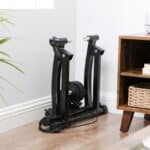 Lietus ir nepalankus oras neapribos jūsų kelio į fizinę formą ir sveikatą. Jūs įvaldote dieną, kad ir su kokiais sunkumais susidurtumėte. Jūsų lenktyninis dviratis paprastais žingsneliais pritvirtinamas prie riedėjimo treniruoklio. Naudodami 6 reguliuojamus pasipriešinimo lygius galite imituoti skirtingus sudėtingumo lygius savo svetainėje, tarsi važiuotumėte dviračių takais arba kaimo keliais. Sklandus mechanizmas leidžia ramiai treniruotis netrukdant šeimai ar kaimynams. Pridedama priekinio rato atrama taip pat išlaiko jūsų dviratį stabilų.