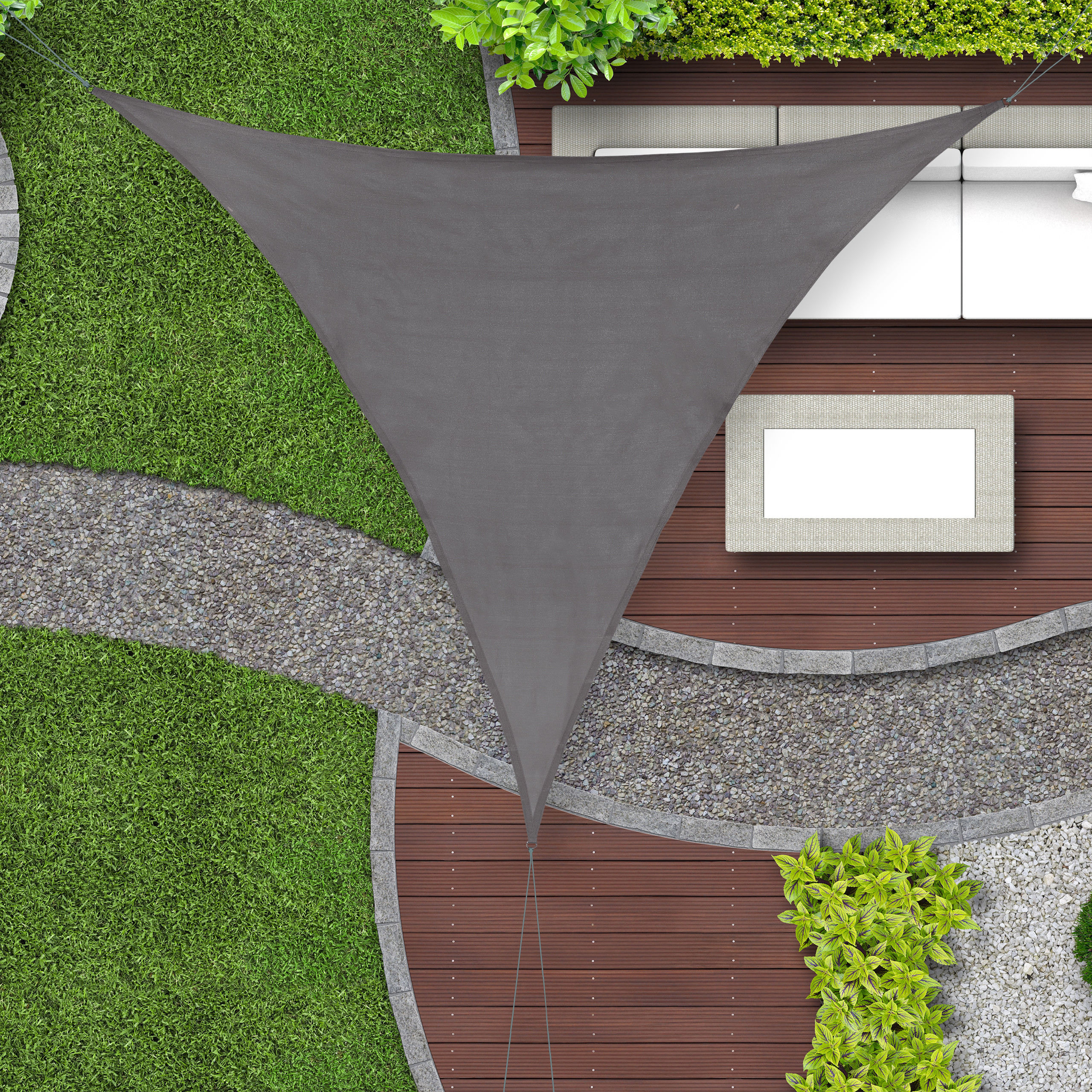 Pasirinkite šį trikampį tentą nuo saulės ir mėgaukitės komfortu bei stiliumi savo lauko erdvėje!
