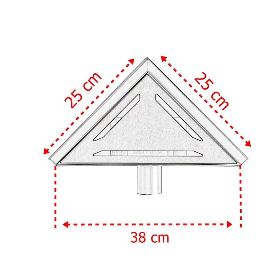 Trikampė kanalizacija Dušo atliekos 25x25cm Aukštos kokybės apdirbimas, elegantiškas dizainas ir aukščiausios kokybės konstrukcija. Pagaminti iš nerūdijančio plieno, mūsų kanalizacijos vamzdžiai yra itin patvarūs ir atsparūs korozijai. Dėl paprastos konstrukcijos nutekėjimo jį sumontuoti itin paprasta. Grotelės turi atvartą prieinamoje vietoje, kad būtų lengviau išvalyti kanalizaciją, kur dažnai kaupiasi plaukai. Su mūsų kanalizacija bus daug lengviau išlaikyti švarą. ; ; Privalumai: modernus dizainas labai lengvai valomas (nuimamas sifonas) gali būti derinamas su visų tipų plytelėmis didelis ilgaamžiškumas – pagamintas iš aukščiausios kokybės nerūdijančio plieno lengvas ir greitas montavimas, nereikia naudoti kampinių pjūvių plytelėse didelis efektyvumas patogus sprendimas neįgaliesiems Naudojimas: namuose (vonios, skalbyklos, džiovyklos, pagalbinės patalpos, katilinės, garažai) mokyklose viešbučiuose maitinimo įstaigose pirtyse baseinuose ir kt. Techniniai duomenys: Bendras aukštis: 9cm ; ilgio trikampio kraštas: 25 cm ; ilgio trikampis pagrindas 38cm Padėklo aukštis: 5,5 cm; burnos skersmuo: 4 cm ; Į KOMPLEKTĄ ĮSKAIČIUOTA: Vandens nutekėjimo lovelis su sifonu Maskavimo plokštė Nuimama purvo gaudyklė Nuimama apsauginė grotelė Sandarinimo kilimėlis ; Montavimo priedų rinkinys; ;PVC vamzdis Surinkimo instrukcijos Kiti variantai galimi kituose aukcionuose