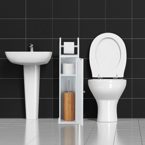• Daugiafunkcinė spintelė: Galima naudoti kaip tualeto šepetėlio su stovu arba valymo priemonių laikymo vietą.