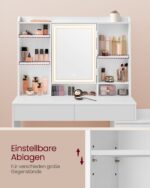 Šis elegantiškas ir modernus tualetinis staliukas yra puikus pasirinkimas tiems, kurie vertina stilių ir funkcionalumą. Jo minimalistinis dizainas ir balta spalva suteikia švaros ir šviesos pojūtį, puikiai derantį prie bet kokio interjero.