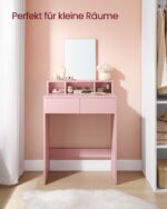 Įneškite elegancijos ir žavesio į savo miegamąjį su šiuo išskirtiniu tualetiniu staliuku. Jo subtili rožinė spalva ir rafinuotas dizainas suteiks jūsų erdvei švelnumo ir prabangos pojūtį. Šis staliukas ne tik puikiai atrodys, bet ir bus praktiškas jūsų kasdienės grožio rutinos palydovas.