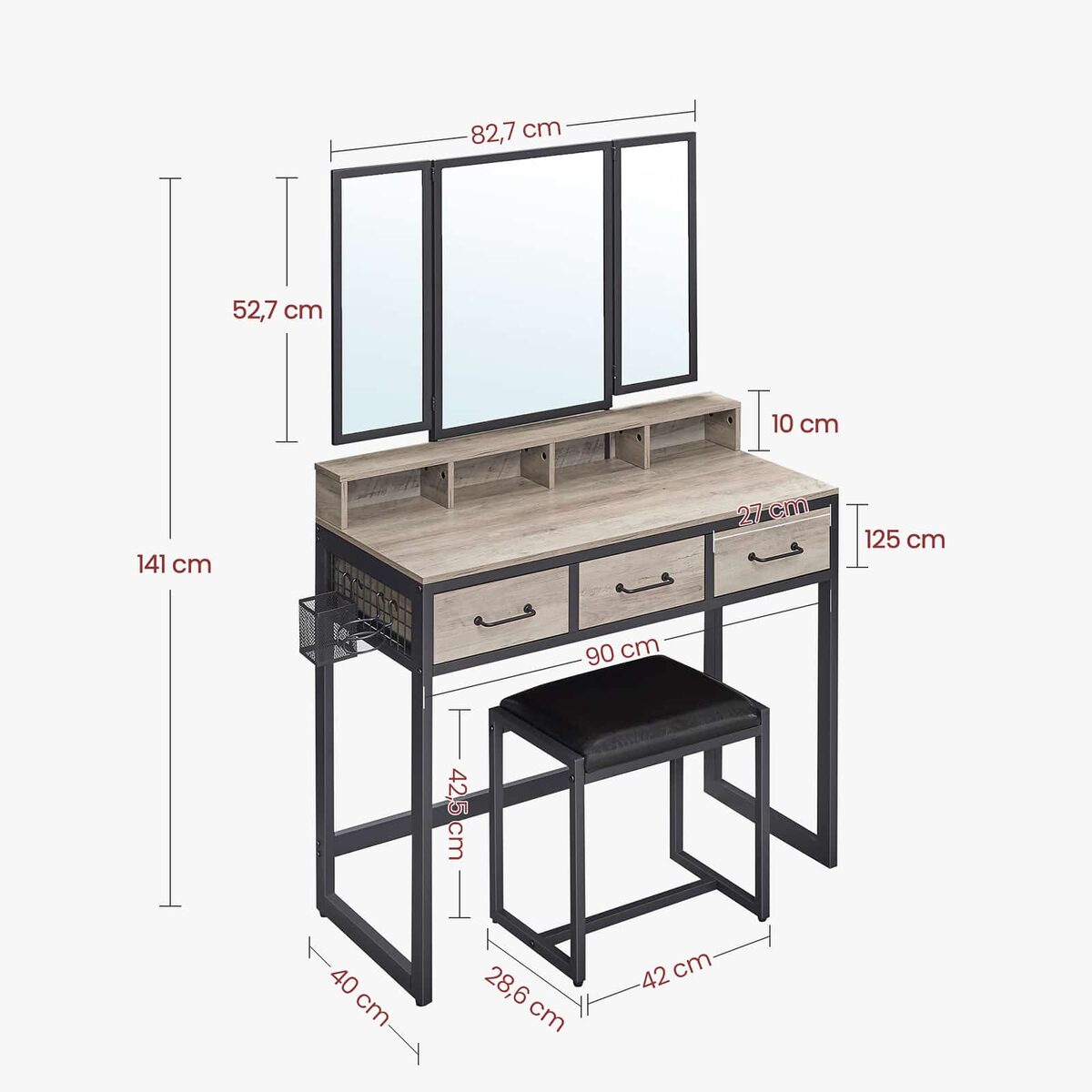 • Tualetinis staliukas: 90 x 40 x 141 cm (Ilgis x Plotis x Aukštis)