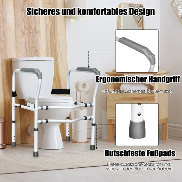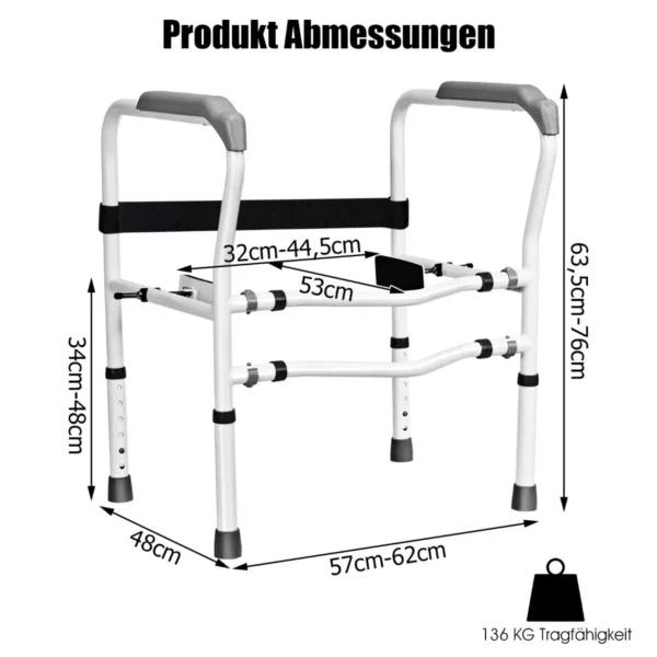 Tualeto atrama 48x62x76cm baltos ir juodos spalvos – patikima pagalba saugiam ir patogiam sėdėjimui ant unitazo. Reguliuojamo aukščio ir pločio tualeto turėklas tinka daugeliui standartinių tualetų ir užtikrina stabilumą bei saugumą įvairiems vartotojams.