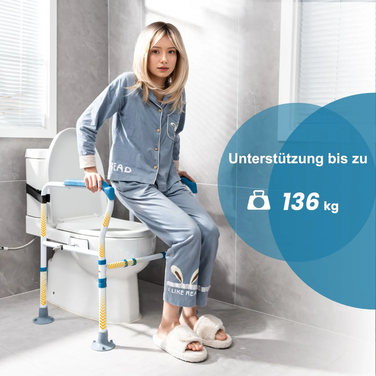 Tualeto rėmas 68×49,5×78 cm, baltos ir mėlynos spalvos, skirtas užtikrinti saugumą ir stabilumą naudojantis tualetu. Reguliuojamas tualeto saugos turėklas pritaikomas įvairių formų ir dydžių unitazams, o sulankstomas dizainas leidžia sutaupyti vietos. Šis rėmas yra patogus naudoti ir tinka tiek namų, tiek priežiūros įstaigų aplinkoms.