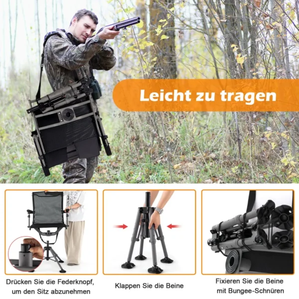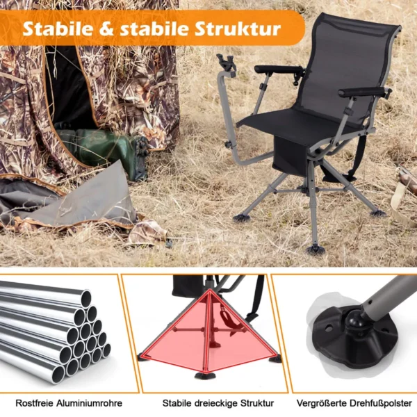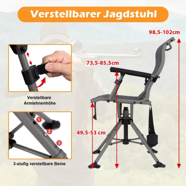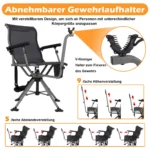 - Medžioklės ir šaudymo kėdė su 360° tyliai sukimosi konstrukcija.