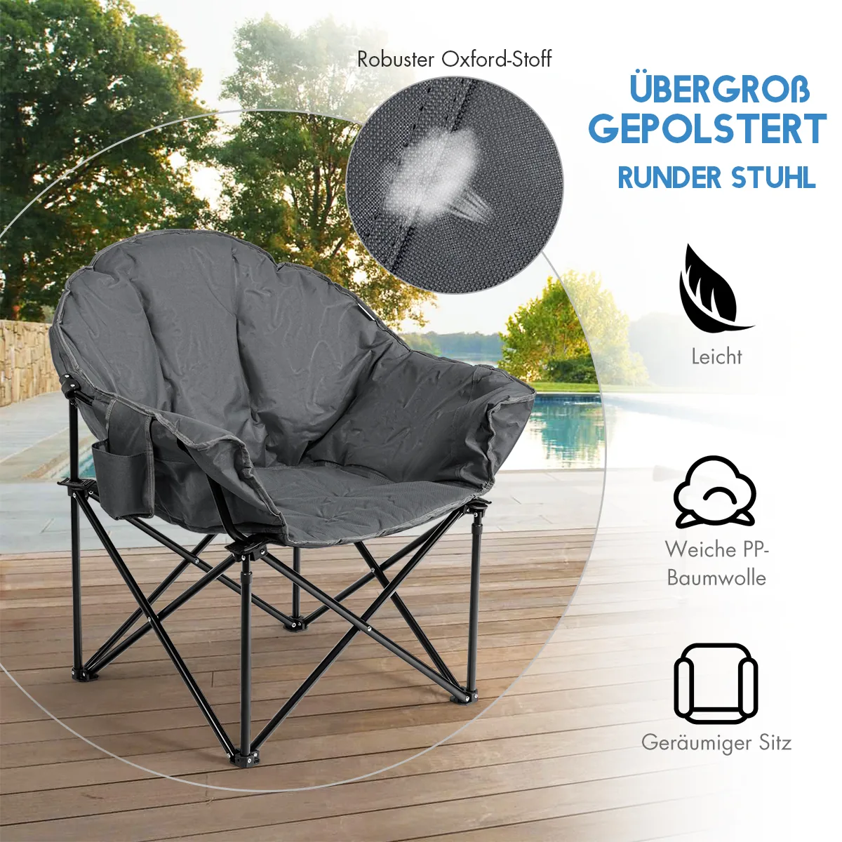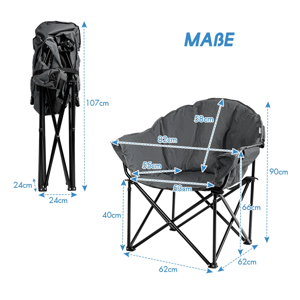 Turistinė kėdė 82x62x90 cm pilkos ir juodos spalvos – patogi ir sulankstoma lauko kėdė, tinkanti stovyklavimui, žvejybai ar poilsiui terasoje. Dėl tvirto geležinio rėmo ir kvėpuojančio Oksfordo audinio su medvilnės užpildu ši kėdė suteiks stabilumo ir komforto jūsų lauko veikloms.