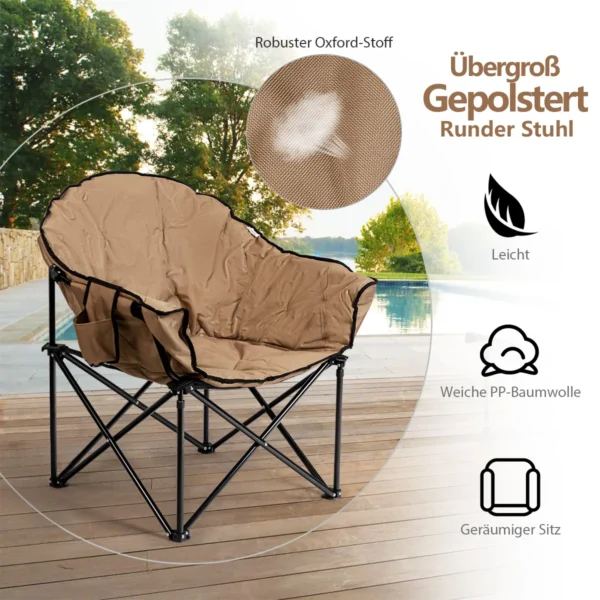 - Sulankstoma turistinė kėdė su dideliu atlošu ir ergonomiška sėdyne.