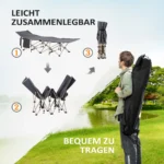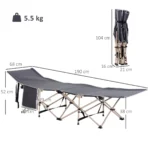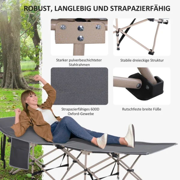 Visada gulėkite patogiai, net judėdami ar keliaudami. Jokių problemų su mūsų lengvai transportuojama lova iš Outsunny. Gultas yra sulankstomas, todėl jį galima greitai pastatyti ir nuimti. Patvarus Oxford dangtis yra atsparus oro sąlygoms ir plyšimui ir gali išlaikyti iki 150 kg. Milteliniu būdu dengtas rėmas yra tvirtas, atsparus oro sąlygoms ir idealiai tinka jūsų kitai kelionei lauke.