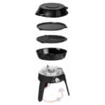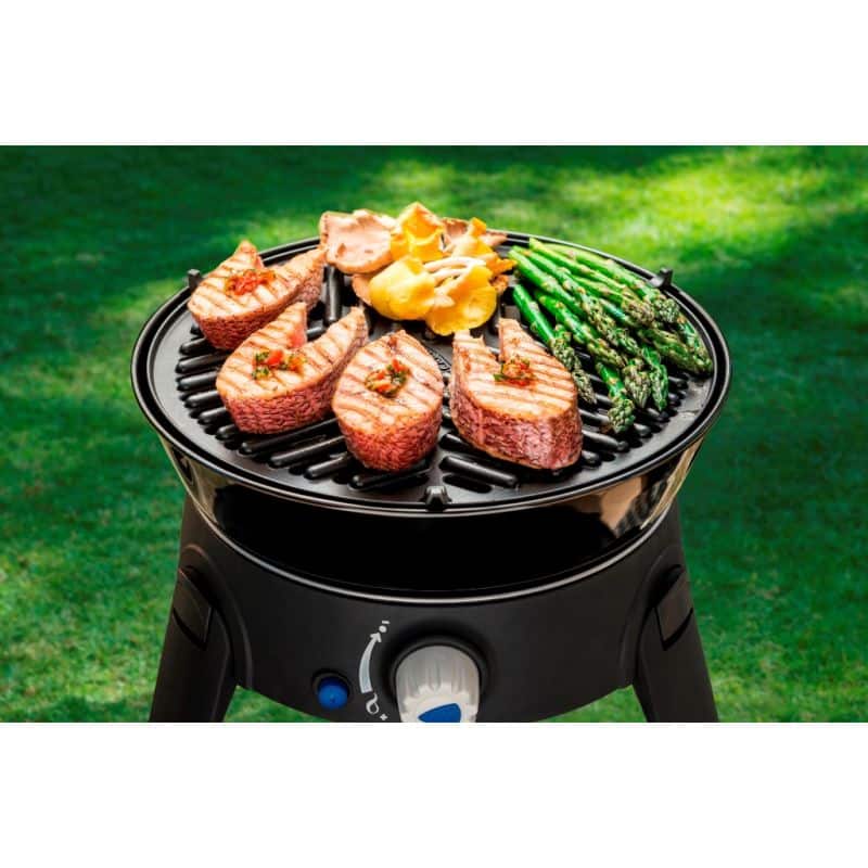 Šis nešiojamasis ir universalus dujinis grilis sveria mažiau nei 4 kg ir turi 4 keičiamus kepimo paviršius – puodą, kuris taip pat atlieka dangtį, dvipusę lėkštę su nepridegančia danga (viena briaunota pusė, kita lygios), nepridegančios plokščios grotelės ir puodų stovas. Viskas supakuota į patogų nešiojimo krepšį. Žemo slėgio (LP) Safari Chef grilio versija veikia su dujomis iš kiekvieno cilindro, kurio slėgis yra 2,8 kPa (žarna ir reguliatorius Safari Chef yra tobulas grilis stovyklavimui, žygiams, žvejybai, kelionėms su nameliu ar kemperiu ir bet kokiai aktyviam poilsiui kartu su maisto gaminimu lauke Tipas: žemas slėgis Privalumai: – Sulankstomos kojelės, guma, neslidžia – Nerūdijančio plieno degiklis – Porcelianiniu emaliu dengtas dangtis / puodas su vėsiomis rankenomis – Specialus krepšys saugiam laikymui ir patogiam nešiojimui Matmenys: Aukštis: 38,8 cm Plotis: 32 cm GYLIS: 32 cm Informacija apie gaminį: Apytikslis svoris: 3,6 Kg Bendra šildymo galia: 1,8 kW Bendras vidutinis dujų suvartojimas: 130 g / h Vidutinis eksploatavimas slėgis: 28-37 mbar Degiklio sistema: – Veikia dujomis iš bato li – Automatinis pjezo uždegimas – Liepsnos valdymas Kepimo paviršius: Riebalinė kepimo plokštė, sk. 28 cm Lygi plokštė, kurios skersmuo 26 cm Dangtis / Wok sk. 27 cm arba 3,8 l talpos Turite nusipirkti žarną cilindrui prijungti prie viryklės (nepridedama) Šis produktas suteikia patiekalams subtiliai saldų aromatą ir skonį, Universalus visų rūšių mėsai, ypač rekomenduojamas jautienos, paukštienos ir kiaulienos patiekalams. „Safari Chef“ yra aukšto ir žemo slėgio versijos.