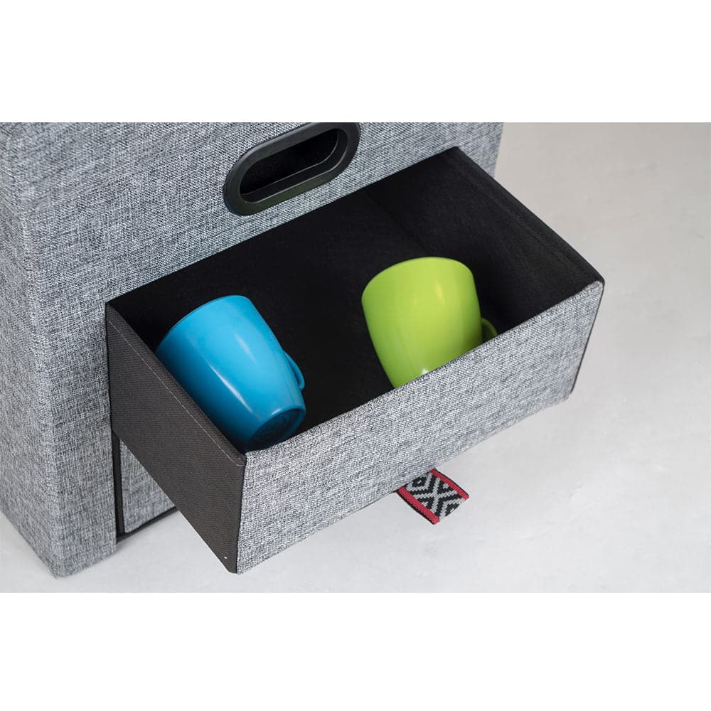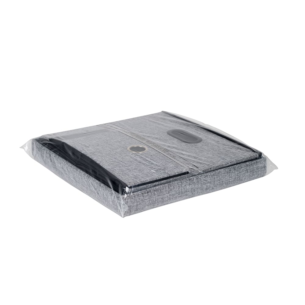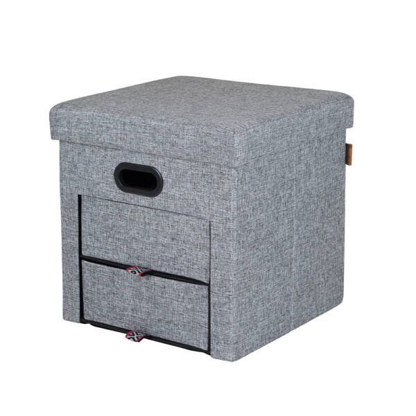 Praktiškas kubo formos pufas iš Oksfordo poliesterio, pilkos spalvos lininis. Sėdynė atlaiko žmogaus svorį iki 100 kg. Stalčiuose galima laikyti įvairius smulkius daiktus.MatmenysAukštis: 40cmPlotis: 40cmIlgis:40cmTechniniai duomenys2 talpūs skyriaiMedžiaga: Oksfordo poliesteris Spalva: pilkaMatmenys sulankstant: 9x40x40xcmSvoris: 4kg