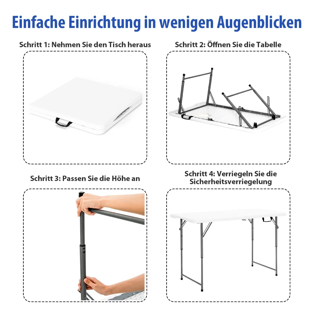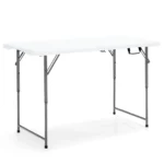 Turistinis sulankstomas stalas 120x60x74,5 cm baltos ir pilkos spalvos puikiai tinka tiek vidaus, tiek lauko veikloms. Dėl reguliuojamo aukščio ir nešiojamo dizaino šis stalas yra praktiškas pasirinkimas stovyklavimui, piknikams, vakarėliams ar darbui lauke.