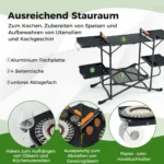 - Aliuminio stalviršis ir 4 šoniniai stalai suteikia pakankamai vietos maisto ruošimui.