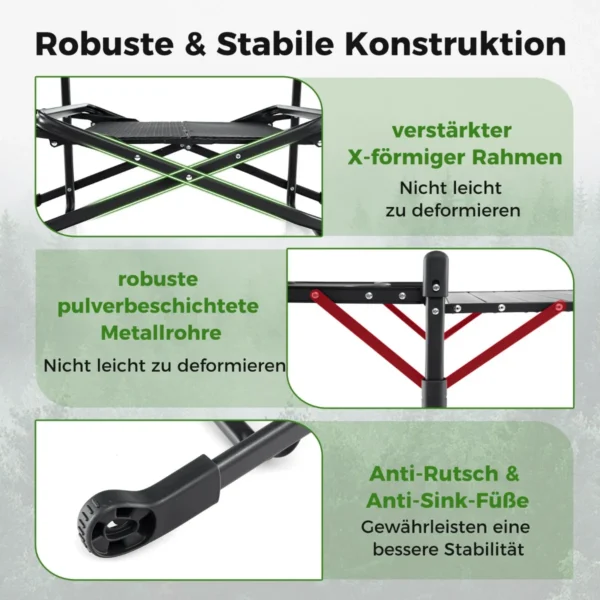 - Stalas sulankstomas ir telpa į pridedamą nešiojimo krepšį, todėl transportavimas yra paprastas.