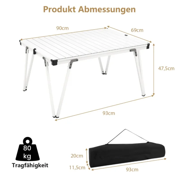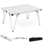 Turistinis sulankstomas stalas 93x69x47,5cm sidabrinės spalvos yra patogus ir funkcionalus lauko baldų sprendimas stovyklavimui, iškyloms ir žvejybai. Pagamintas iš aliuminio, šis nešiojamas stalas pasižymi patvarumu ir lengvumu, o sulankstomas dizainas leidžia lengvai transportuoti ir laikyti.