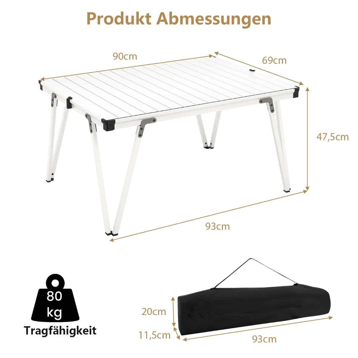 - Matmenys sulankstyto stalo: 91 x 11,5 x 20 cm