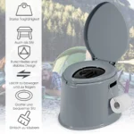 Turistinis tualetas 41x49x34cm, pilkos spalvos, skirtas patogiam naudojimui lauko sąlygomis. Kompaktiškas ir lengvas, jis idealiai tinka stovyklavimui, žygiams ir kitoms lauko veikloms, užtikrindamas komfortą be didelių pastangų.