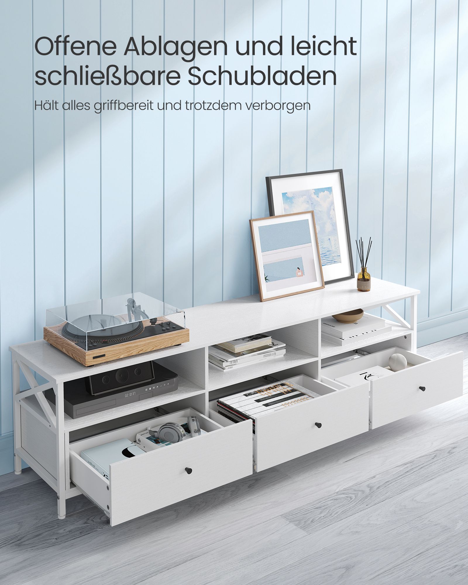 Pasirinkite šią TV spintelę ir suteikite savo namams modernų ir stilingą akcentą, kuris neabejotinai pritrauks dėmesį ir taps jūsų svetainės puošmena.