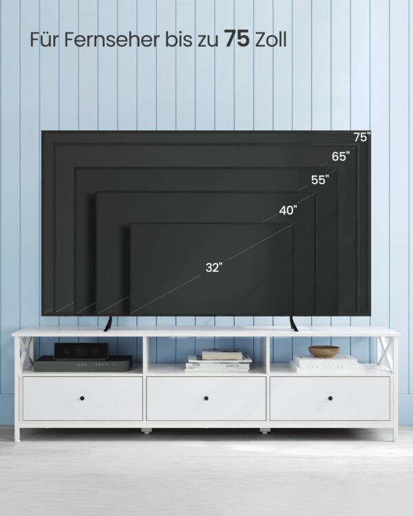 Ši TV spintelė yra ne tik estetiškai patraukli, bet ir praktiška. Jos erdvus dizainas leidžia patogiai laikyti įvairius elektronikos prietaisus, knygas ar dekoratyvinius elementus. Tvirta konstrukcija užtikrina, kad jūsų televizorius ir kiti daiktai bus saugiai laikomi.