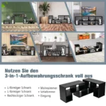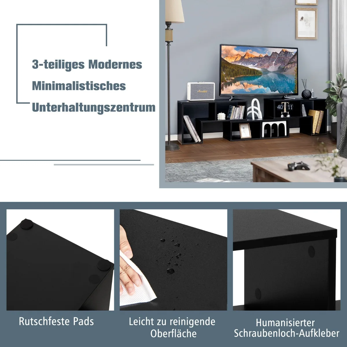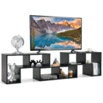 TV staliukas 180x30x43cm juodos spalvos – funkcionali ir erdvi medinė lentyna, skirta televizoriams iki 65 colių. Šis išskirtinis trijų dalių stovas pasižymi reguliuojamu dydžiu ir įvairiomis derinimo galimybėmis, leidžiančiomis pritaikyti jį pagal jūsų poreikius.