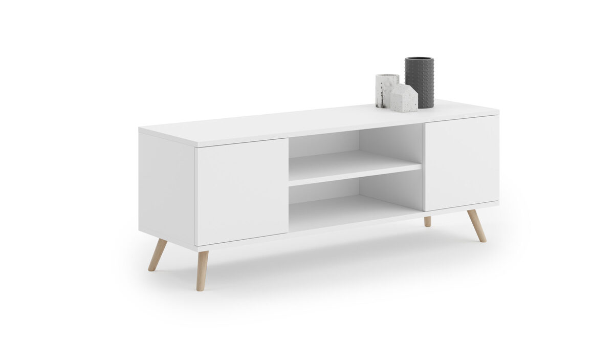 Šio TV staliuko matmenys yra: plotis – 155 cm, aukštis – 50 cm, gylis – 40 cm, todėl jis puikiai tiks tiek mažesnėse, tiek didesnėse erdvėse.