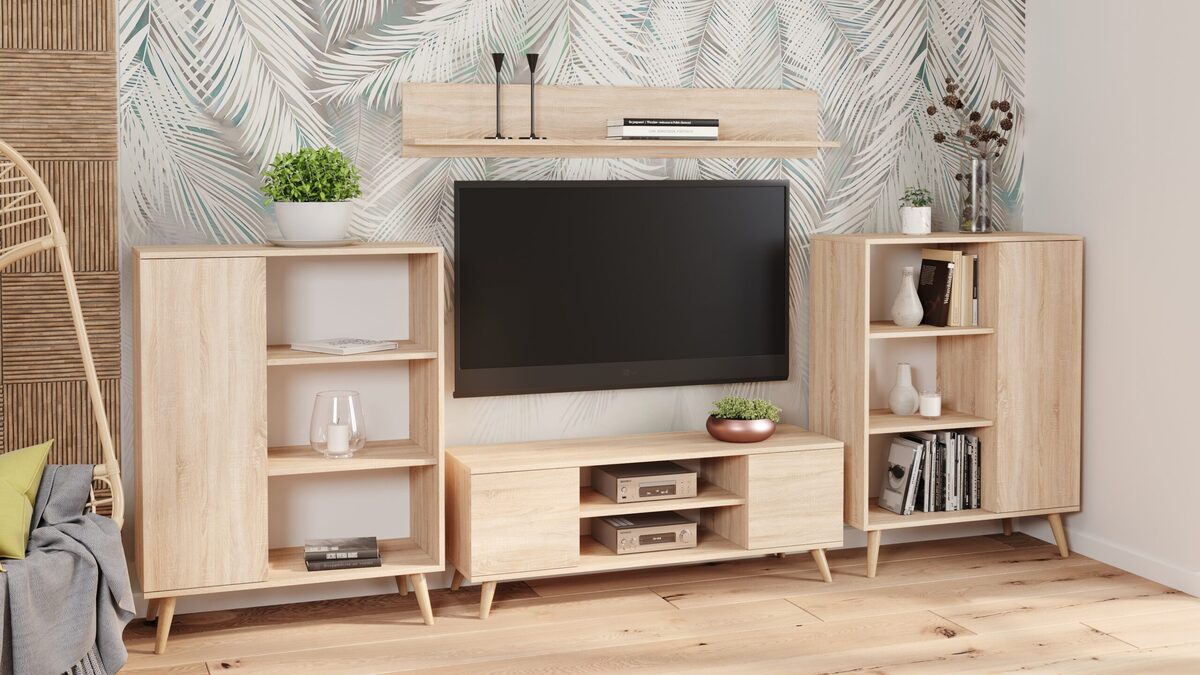 TV staliukas Focus RTV 155x50x40 cm, smėlio spalvos, yra puikus pasirinkimas jūsų svetainei. Šis stilingas ir funkcionalus baldas pagamintas iš aukštos kokybės medžiagų, užtikrinančių ilgaamžiškumą ir patvarumą.