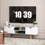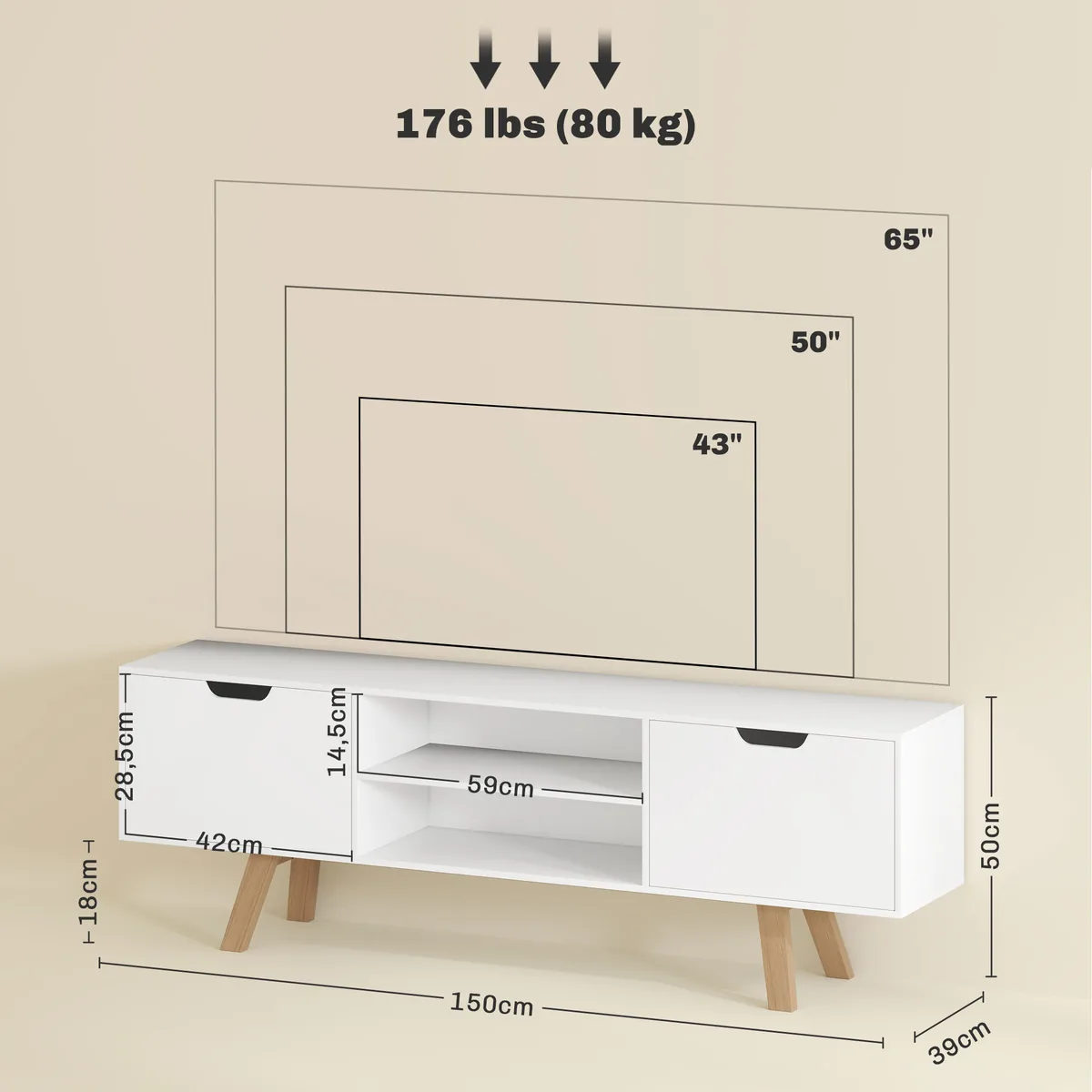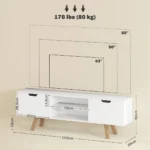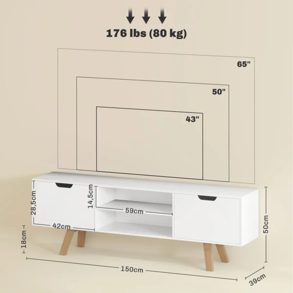 - ✔ Pagaminta iš medžio drožlių plokštės ir MDF. Televizoriaus korpuso kojelės pagamintos iš medžio masyvo užtikrina patikimą, tvirtą stovą