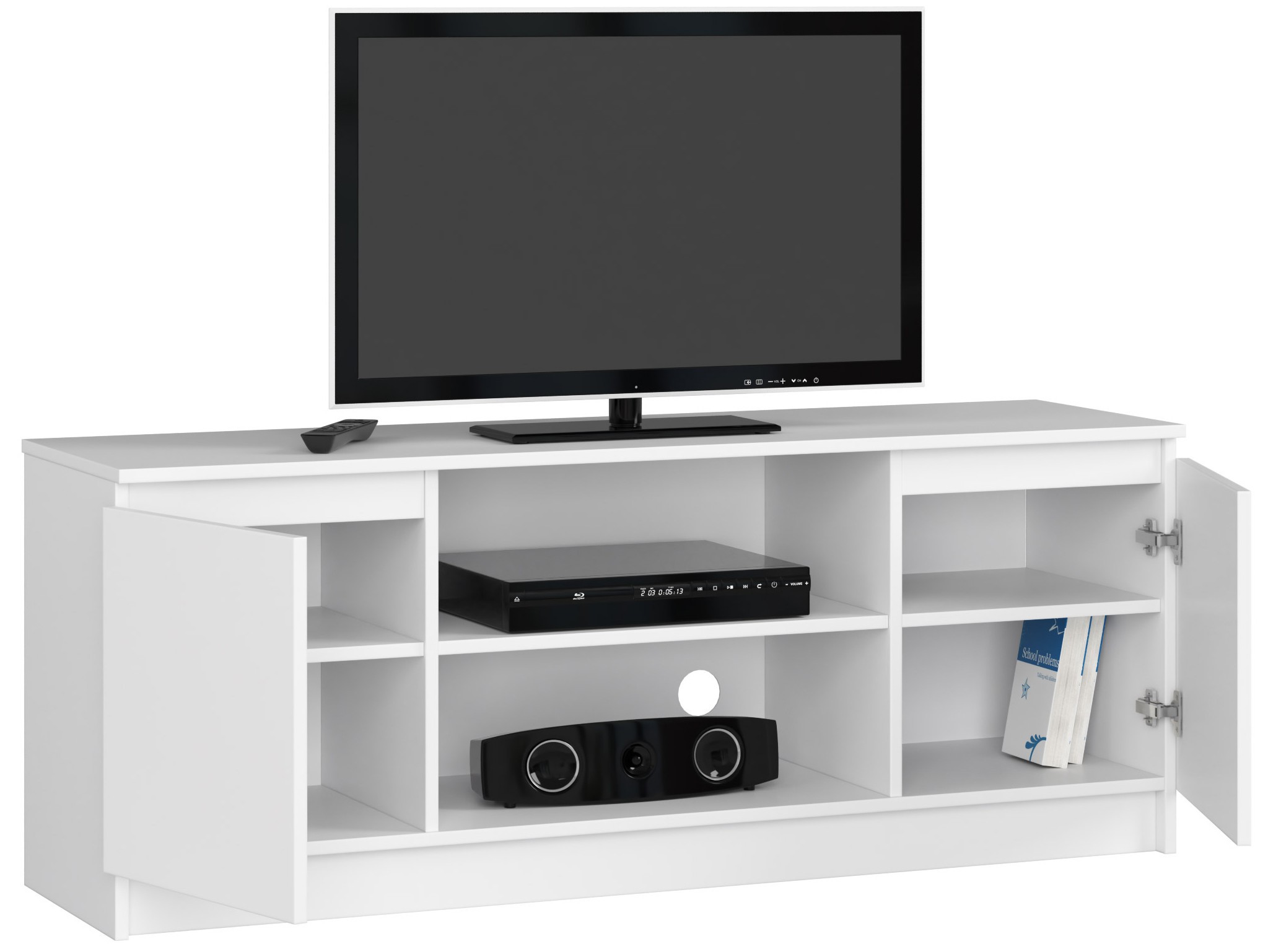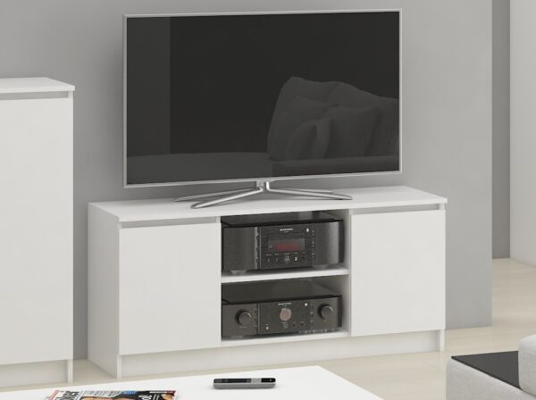 Televizoriaus korpusas K140 yra puikus pasirinkimas visiems, ieškantiems stabilios ir estetiškos TV spintelės. Įrengtas lentyna ir dviejų durų spintelės, jame tilps visi elektroniniai prietaisai ir kiti smulkūs daiktai, kuriuos norime turėti po ranka – jo išmatavimai pritaikyti prie populiariausių priedėlių, konsolių ir garso įrangos rinkoje. Dėl universalaus, modernaus dizaino ir gražios baltos spalvos spintelė puikiai tiks įvairaus dekoro kambariuose. Rekomenduojame ypač į vis dar madingo skandinaviško ir minimalistinio stiliaus interjerus. Komoda pagaminta iš kokybiškos, trinčiai atsparios 16mm laminuotos plokštės, kurios kraštai padengti apsauginiu ABS sluoksniu kraštas. Dėl to baldas yra itin patvarus ir atsparus įvairiems mechaniniams pažeidimams, atsirandantiems dėl kasdienio naudojimo. Spintelių fasadai taip pat pagaminti iš laminuotos plokštės, kiekvienoje viduje yra po vieną lentyną, todėl nesunku sutvarkyti funkcionalią daiktų laikymo vietą. Baldai, skirti montuoti savarankiškai – pridedama atitinkama instrukcija. RTV K140 komodai iš mūsų asortimento taikoma 24 mėnesių garantija. – Komoda pagaminta iš dilimui atsparios laminuotos plokštės – Stalčių fasadai iš laminuotos lenta – Kiekvienos durelės viduje yra po vieną lentyną – Kraštai padengti ABS briauna, užtikrinančia aukštą apsaugą nuo pažeidimų – Savarankiškai surenkama komoda – Pristatoma rankiniu būdu – Garantija 24 mėn. – Pažymėtina vieta garso įrangai / dekoderiui, kuris tiks beveik kiekvienam mūsų rinkoje esančiam modeliui