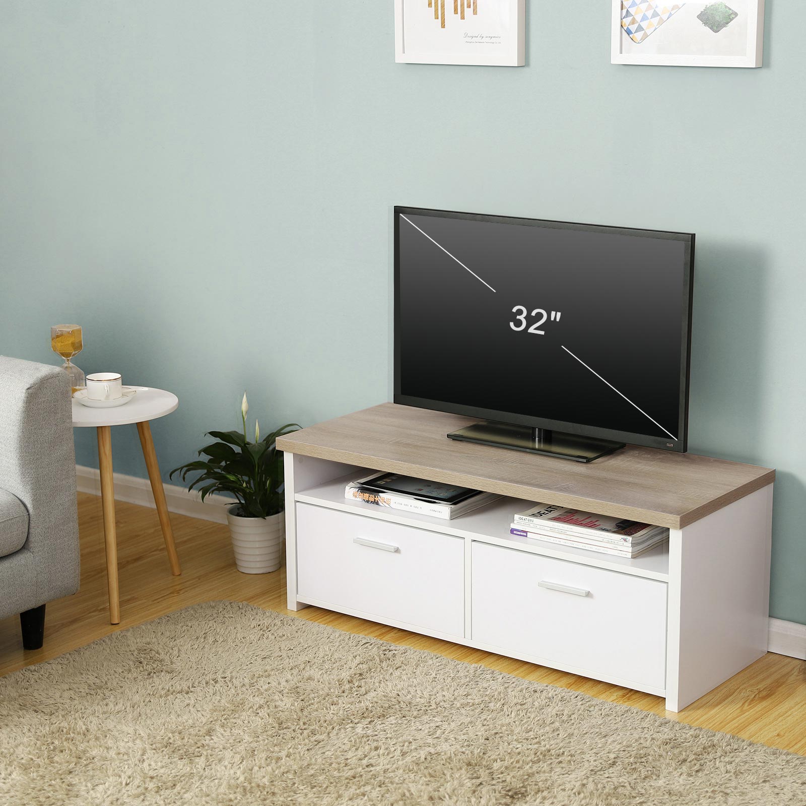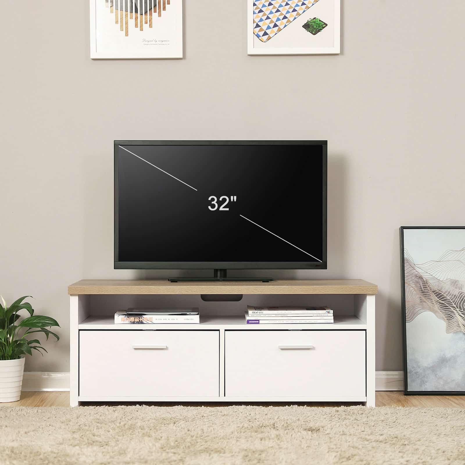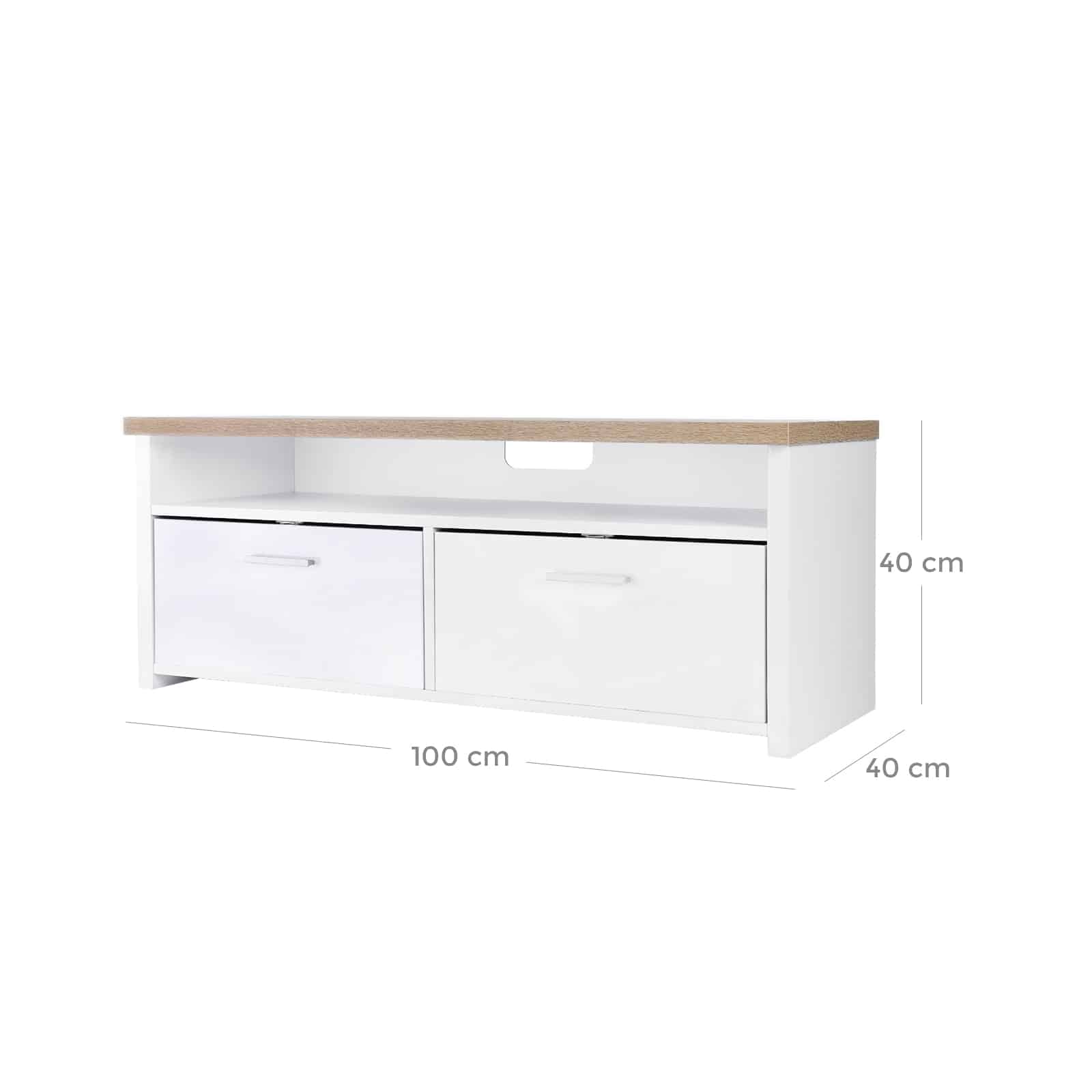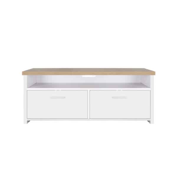 Įvairiaspalvė išvaizda. Baltos ir medžio spalvų klasika puikiai dera su įvairiais apstatymo stiliais. Prie šviesių baldų televizoriaus spintelę galima derinti taip pat elegantiškai, kaip ir prie tamsesnio stiliaus. Medžio išvaizda puikiai dera prie kaimo namų stiliaus ir kiekvienam kambariui suteikia daugiau žavesio.